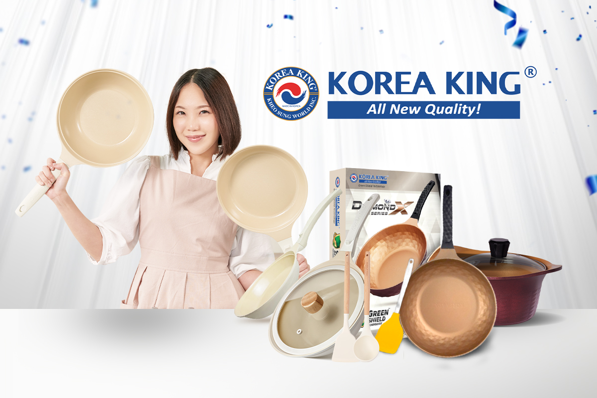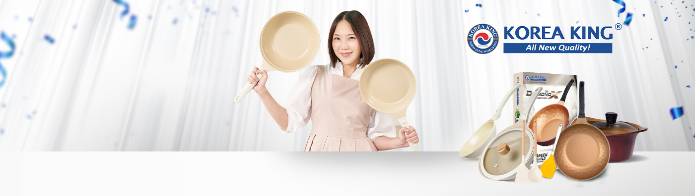 Korea King Diamond x Ceramic (Gold) กระทะ โคเรียคิง ไดมอนด์ เอ็กซ์ เซรามิก (สีทอง) (28cm) 1 ใบ Korea King Colormic (Wok) กระทะ โคเรียคิง คัลเลอมิค ก้นลึก (26cm) 1 ใบ แถมฟรี ฝาแก้ว รุ่น Ceramic 1 อัน + ตะหลิว ซิลิโคน 2 อัน + ตะหลิว Colormic 1 อัน