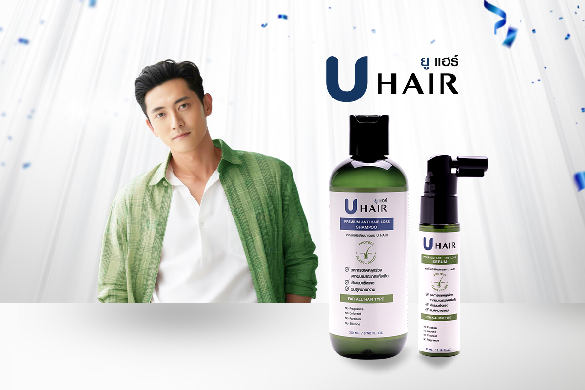 U hair premium anti hair loss shampoo (200ml.) 2 ขวด + U hair premium anti hair loss serum (35ml.) 2 ขวด
