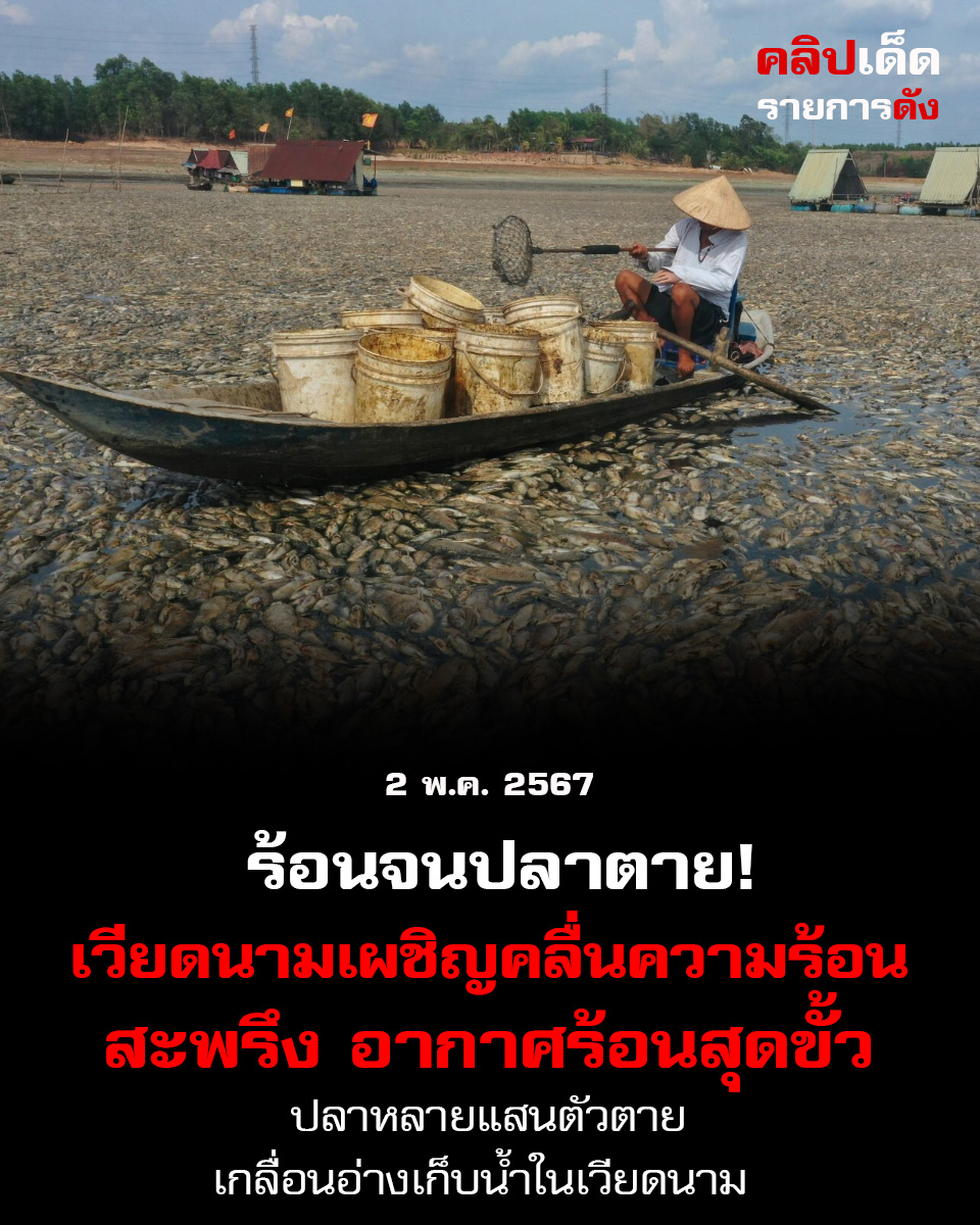 สยอง ปลาหลายแสนตัวตายเกลื่อน ลอยเป็นแพเหนือผิวน้ำที่อ่างเก็บน้ำ Song May ในจังหวัดด่งนาย (Dong Nai) ทางภาคใต้ของเวียดนาม จนสร้างความตื่นตระหนกตกใจให้แก่ชาวบ้านในพื้นที่และชาวเวียดนามทั้งประเทศเป็นอย่างมาก ขณะที่สถานีโทรทัศน์และสื่อออนไลน์ต่างรายงานสถานการณ์ปลาหลายแสนตัวตายเกลื่อนเป็นแพ ท่ามกลางสภาพอากาศร้อนจัดและแห้งแล้งหนัก จนน้ำในอ่างเก็บน้ำแทบไม่มี ทางภาคใต้ของเวียดนามแล้งจัด จนทำให้อ่างเก็บน้ำแห้งผาก แทบไม่มีน้ำเหลือ สื่อในเวียดนามและชาวบ้านในพื้นที่ได้ตั้งข้อสังเกตถึงสาเหตุที่ทำให้ปลาตายพร้อมกันมหาศาลเช่นนี้ ว่าเป็นเพราะคลื่นความร้อนที่แผ่ปกคลุมเอเชีย จากภาวะโลกร้อน สภาพอากาศเปลี่ยนแปลงหนัก ทำให้เวียดนามมีสภาพอากาศร้อนจัดไม่แพ้ชาติเพื่อนบ้านในอาเซียน รวมทั้ง การบริหารจัดการอ่างเก็บน้ำ Song May ที่ไม่ดี เพราะแทบไม่มีน้ำเหลืออยู่ในอ่างเก็บน้ำ ตามรายงานของสื่อในเวียดนาม ระบุถึงสภาพอากาศที่แห้งแล้งในบริเวณอ่างเก็บน้ำ Song May ที่จังหวัดด่งนาย จนทำให้ปลาหลายแสนตัวตายว่า เกิดขึ้นหลังจากไม่มีฝนตกในพื้นที่มานานหลายสัปดาห์แล้ว และระดับน้ำในอ่างเก็บน้ำก็ลดต่ำลงมาก จนทำให้สัตว์น้ำยากจะมีชีวิตรอด ในขณะที่ เจ้าหน้าที่ที่ดูแลจัดการอ่างเก็บน้ำ ก็จำเป็นต้องปล่อยน้ำออกจากอ่างเก็บน้ำ เพื่อช่วยให้เกษตรกรมีน้ำในการรักษาผลิตผลทางการเกษตร นอกจากนั้น จากการที่มีปลาตายหลายแสนตัวทำให้ขณะนี้ปลาเริ่มเน่าและส่งกลิ่นเหม็นแล้ว