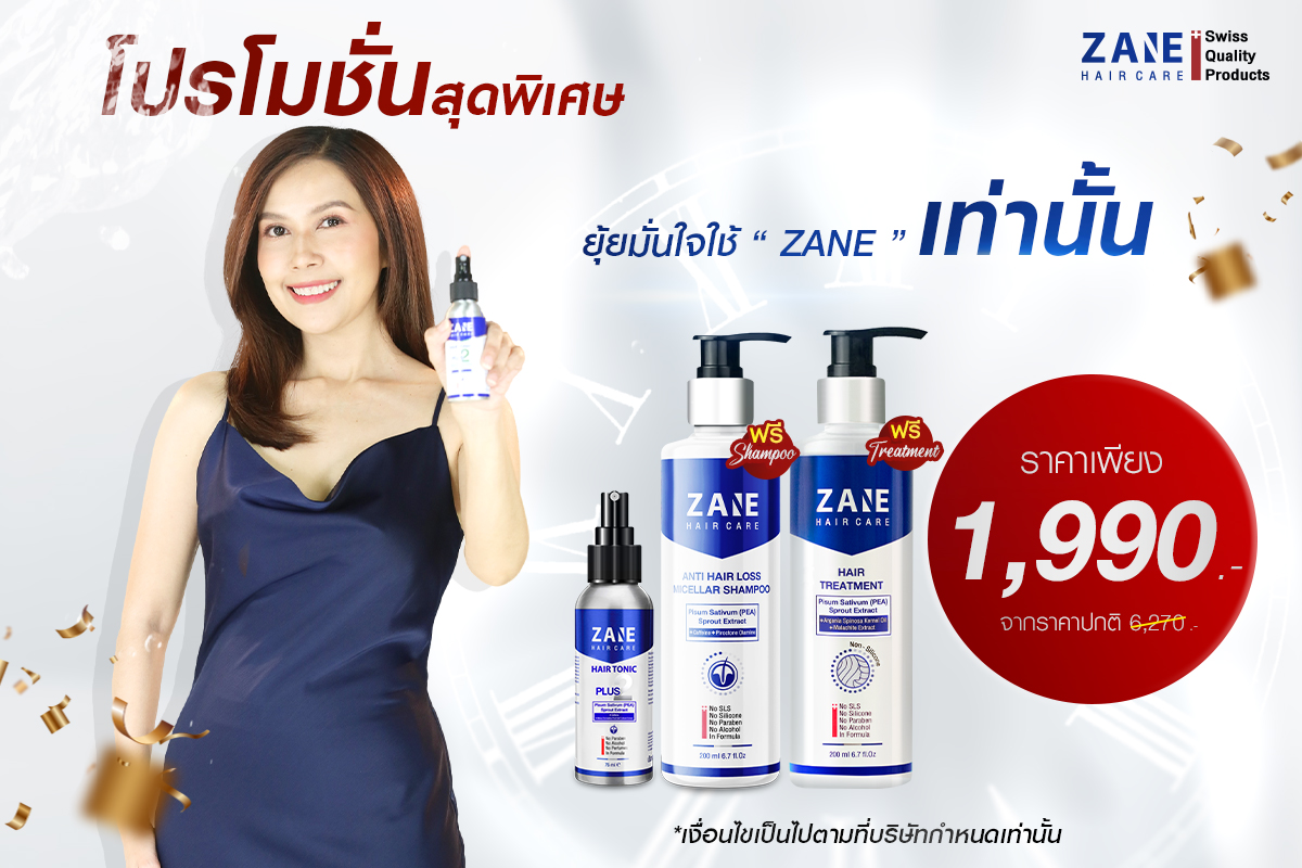 สำหรับใครที่เจอปัญหาผมร่วง ผมบางแบบยุ้ย หรือแฟนคลับท่านใดที่ไม่ได้มีปัญหาผมบาง ผมร่วง ก็สามารถใช้เป็นการบำรุงเส้นผมก็ได้ หากสนใจอยากลองใช้ผลิตภัณฑ์ ZANE Hair Tonic วันนี้ยุ้ยมีสิทธิพิเศษมามาให้แฟนๆกันด้วยนะคะ กับสิทธิพิเศษ ZANE HAIR Tonic Plus 2 (75ml.) 1 กล่อง แถมฟรี Micellar Shampoo (200ml.) 1 กล่อง และ Hair Treatment (200ml.) 1 กล่อง ในราคา 1,990 บาทจากราคาปกติ 6,270 บาท