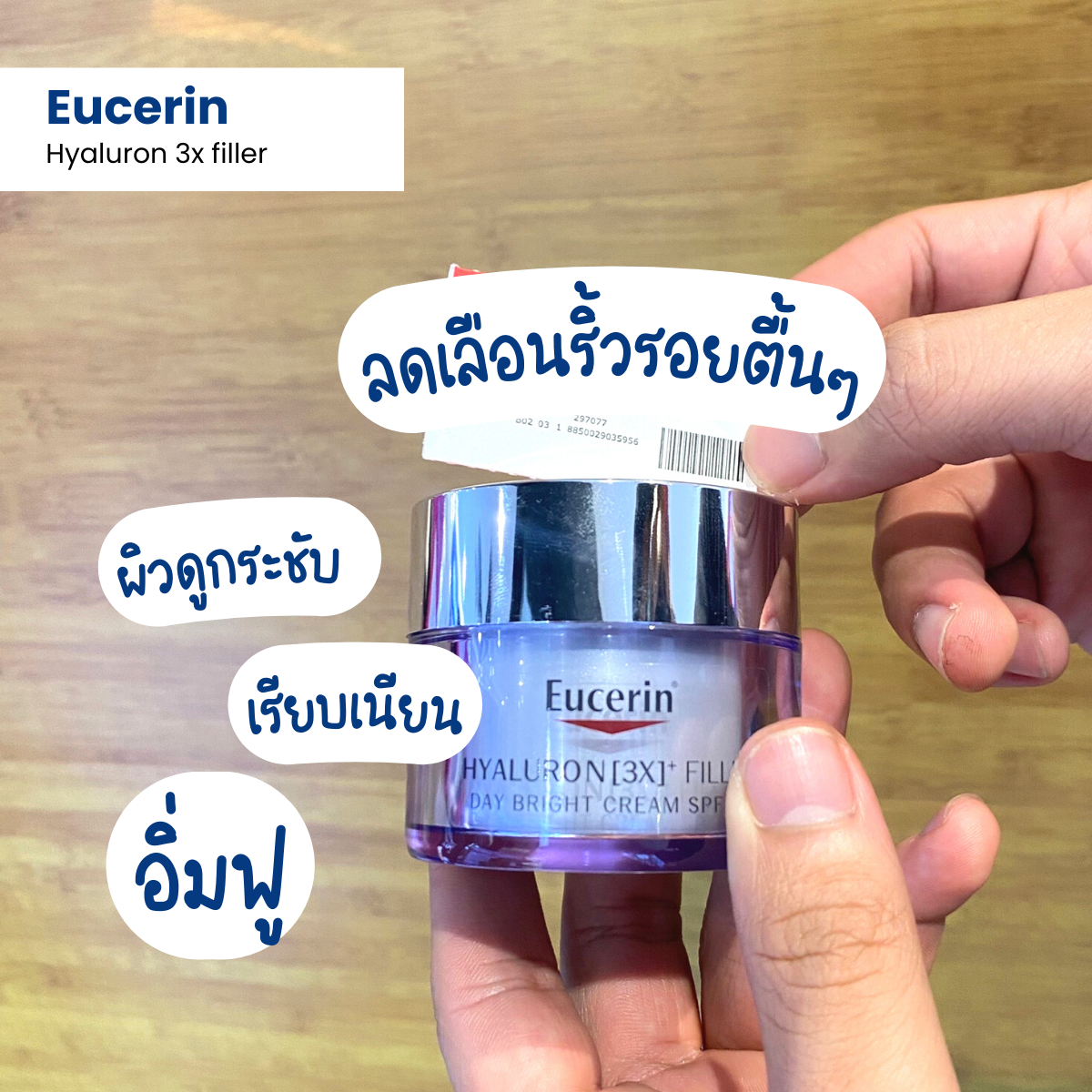 ไอเทมตัวท็อปของแบรนด์ Eucerin เป็นครีมบำรุงผิวที่จะช่วยให้ผิวอิ่มฟู ฟื้นฟูผิวด้วย Hyaluronate พร้อมทั้งยังช่วยลดเลือนริ้วรอยที่เกิดจากแสงแดดได้ดี ปรับระดับผิวหมองคล้ำให้กลับมากระจ่างใสอย่างเป็นธรรมชาติ เนื้อครีมมีความบางเบาไม่หนักผิว และซึมเข้าสู่ผิวได้ดี ไม่เหนอะหนะผิว