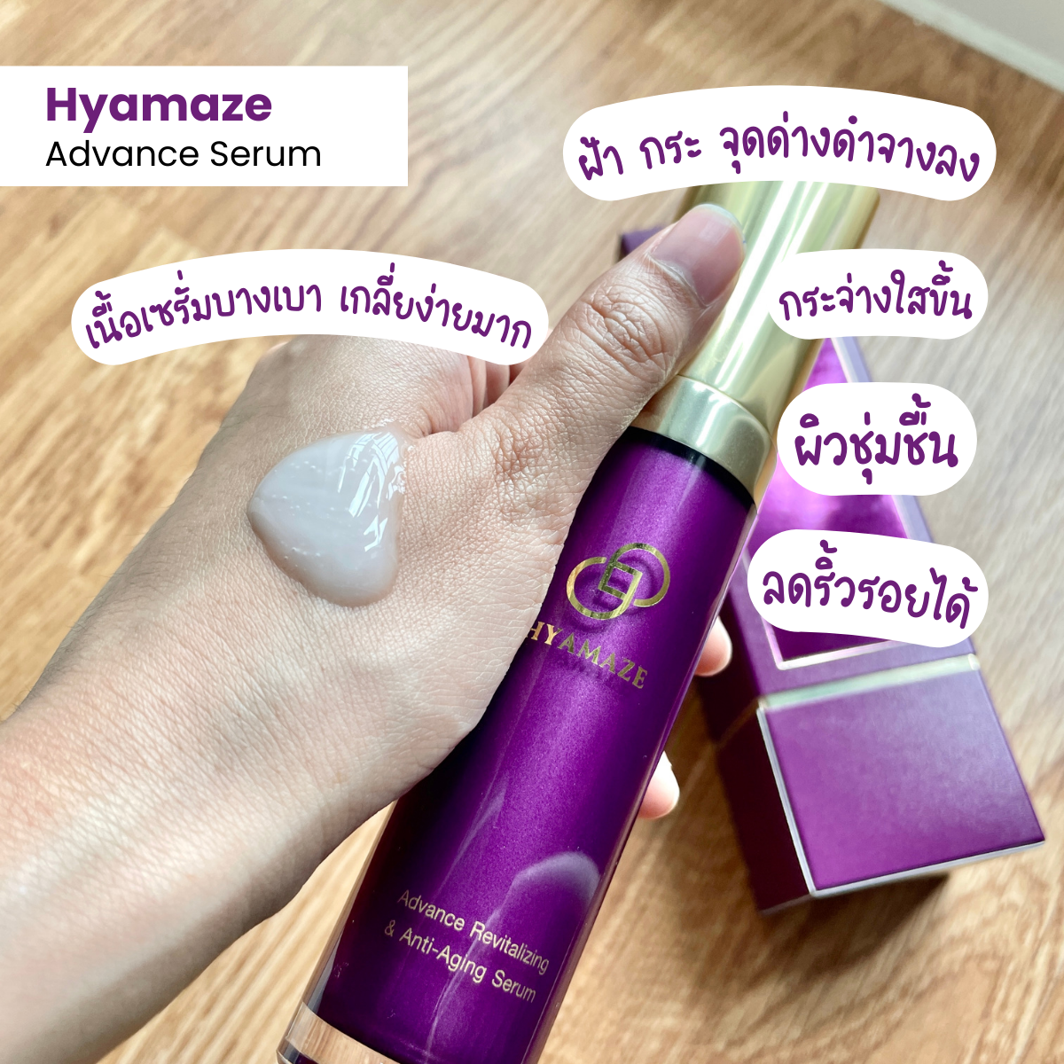 Hyamaze เซรั่มตัวนี้โดดเด่นในเรื่องลดฝ้า กระ จุดด่างดำให้จางลง โดยมีเทคโนโลยี Hywhite เป็นการนำ Sodium Hyaluronate และ Linolenic Acid ช่วยลดเลือนฝ้า กระ จุดด่างดำ เผยผิวกระจ่างใส พร้อมล็อคความชุ่มชื้นยาวนานกว่า 8 ชั่วโมง ด้วยนวัตกรรม Patch 20 จากประเทศฝรั่งเศสที่ทำหน้าที่เสมือนเกราะฟิล์มเคลือบชั้นผิว และช่วยลดเลือนริ้วรอย ร่องลึกแห่งวัย ด้วยสารสกัดสเต็มเซลล์กล้วยไม้ เป็นนวัตกรรม Orchistem จากประเทศสเปน เรียกได้ว่าเป็นการรวมสุดยอดนวัตกรรมที่มีคุณประโยชน์ต่อผิว