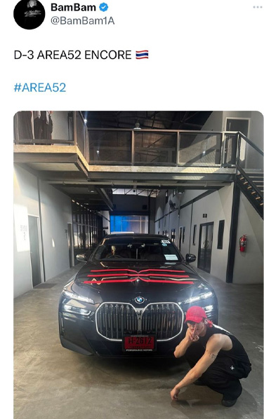 "แบมแบม" ถ่ายรูปคู่รถป้ายแดงทำโฟกัสเลขทะเบียน แต่แคปชั่นช็อตฟีล