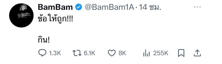 สำหรับเหล่าอากาเซ่และคอหวยนั้นรู้ดีว่า แบมแบม GOT7 หรือ กันต์พิมุกต์ ภูวกุล เจ้าของฉายา แบมแบมของขลัง นั้นไม่ได้มาเล่นๆ เพราะแทบทุกครั้งที่แบมแบม ให้เลขนั้นแม่นมากและทำแฟนๆ โชคดีกันแบบต่อเนื่อง โดยล่าสุด แบมแบม ได้โพสต์รูปคู่กับรถ BMW ป้ายแดง พร้อมกับโชว์ให้เห็นเลขทะเบียนชัดๆ แบบนี้ มีหรือที่แฟนๆ จะไม่โฟกัสที่ตัวเลข ก่อนที่ แบมแบม จะดับฝันและโพสต์ช็อตฟีลเบาๆ กับทวีตข้อความว่า "ขอให้ถูก!!! กิน!" และแฟนๆ ที่เข้ามาคอมเมนต์ เช่น เลขนี้แหละๆๆๆรวยแน่พน,พรุ่งนี้หวยออก,ว้าวววว,ไม่ต้องถามละ ลูกมาบอกเลขเองเลย #แบมแบมของขลัง,จดเลขงวดนี้ครับรวยแน่,เท่ห์มากกกกเลขสวย!,จดแปป,261 126 162,ถามว่าเล่นไหม เล่นค่ะ อยากได้ก็ต้องเสี่ยง55555555,พรุ่งนี้ทุ่มเลยขายบ้านขายรถ ทีมเลขเด็ด The Thaiger เอาใจแฟนคลับและคอหวยคนไทย ลุ้นรับทรัพย์บ่ายนี้หวยออก 2 พฤษภาคม 2567 เปิดเลขทะเบียนป้ายแดงรถยนต์คันใหม่ของ แบมแบม กันต์พิมุกต์ ภูวกุล หรือ แบมแบม GOT เป็นรถยี่ห้อบีเอ็มดับเบิ้ลยู ทะเบียน หมายเลข ฬ-2612 ภายในภาพปรากฏเป็นโรงจอดรถขนาดใหญ่ โดยมีรถยนต์บีเอ็มดับเบิ้ลยูสีดำเงา เปิดไฟหน้าและไฟสูง ทางขวาคือ แบมแบม นั่งยอง ๆ สวมเสื้อแขนกุด กางเกงขายาว และรองเท้าสีดำทั้งตัว สวมหมวกแก๊ปสีแดง-ชมพู พร้อมกับชูนิ้วชี้ขึ้นไปข้างบน