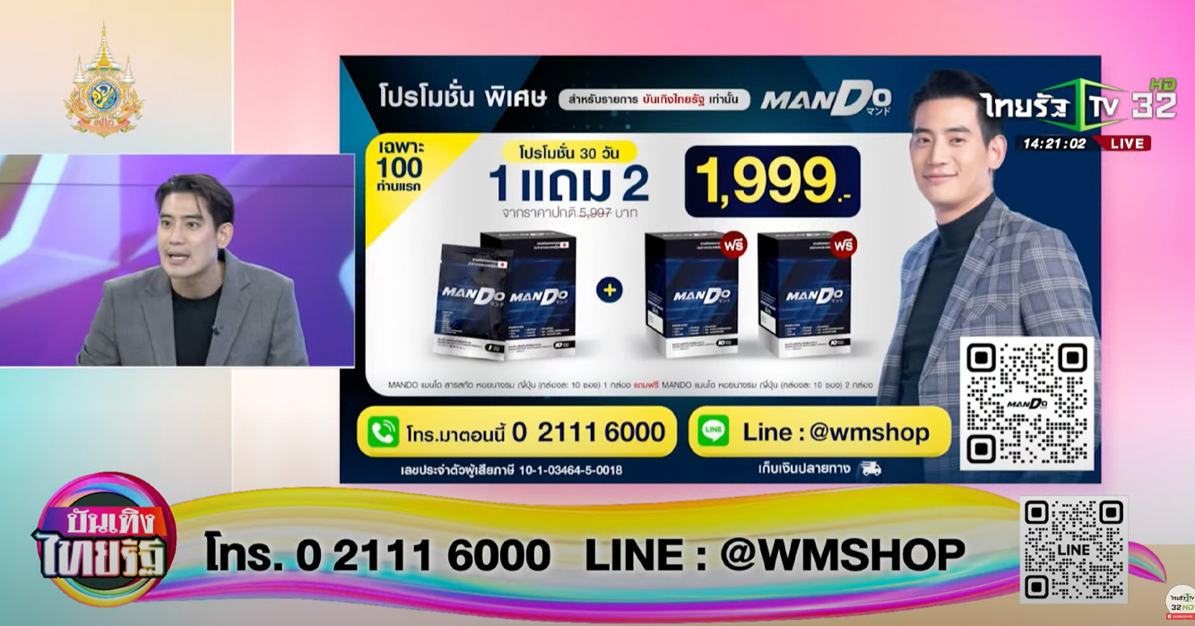 บิ๊ก : ผลิตภัณฑ์อาหารเสริม แมนโด เป็นผลิตอาหารเสริมสำหรับผู้ชายที่มีกิจกรรมเยอะในแต่ละวัน หรือคุณผู้ชายที่ขาดความมั่นใจ ซึ่งตัวนี้มีจะช่วยให้กิจกรรมของเรามีคุณภาพมากขึ้น มีสารสกัดพรีเมี่ยม 9 ชนิด ไม่ว่าจะเป็น