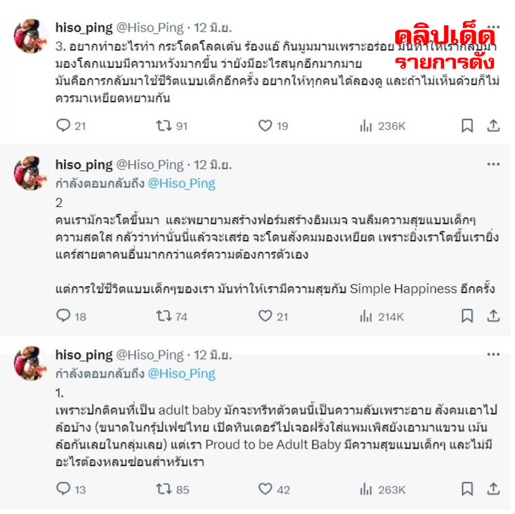 กำลังเป็นที่วิพากษ์วิจารณ์บนโลกออนไลน์อย่างหนัก หลังจาก "ไฮโซปิง" หรือ น้องปิงน่ารัก ดาว TikTok ได้ไปทำคอนเทนต์ นอนแผ่ร้องแอ๊ หรือ Adult Baby กลางที่สาธารณะ ตั้งแต่ที่ประเทศไทย ลามไปจนถึงที่ประเทศญี่ปุ่น