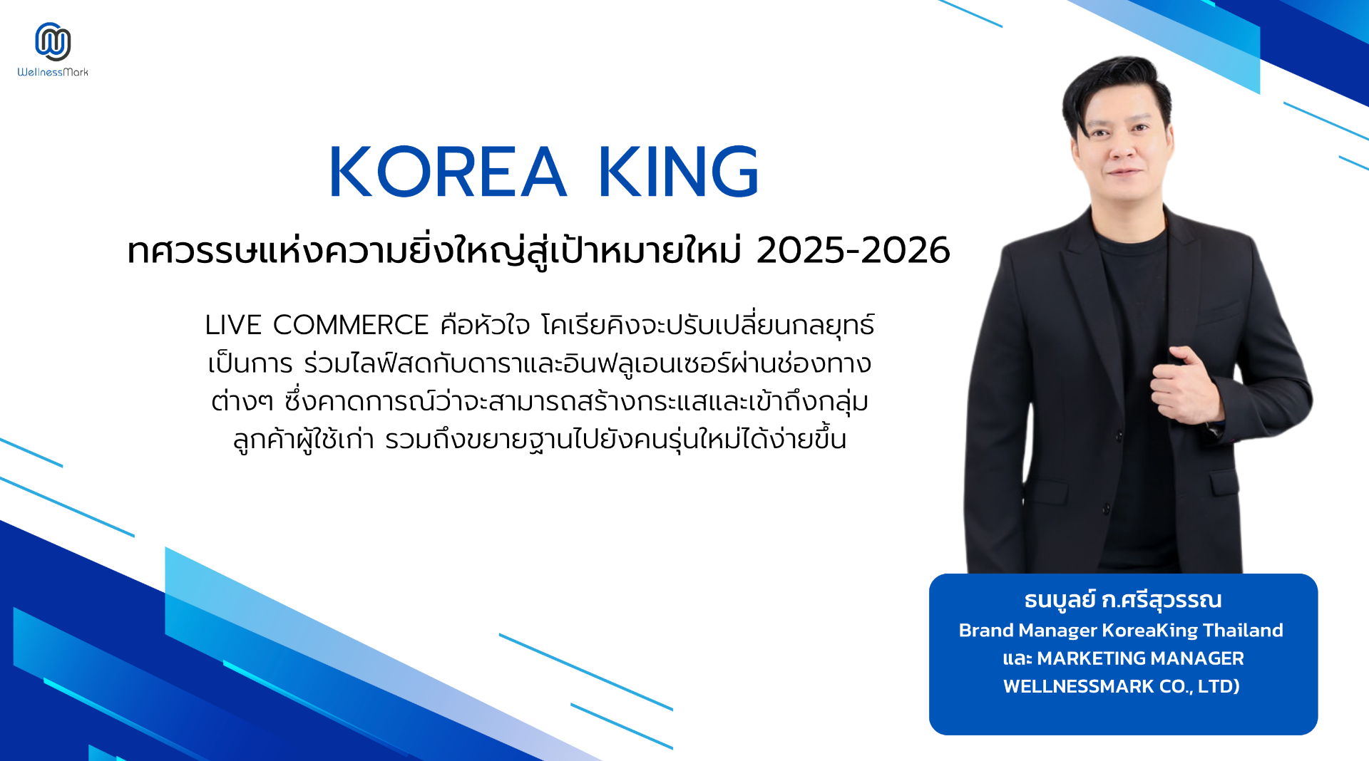 เปลี่ยนสนามรบสู่โลกออนไลน์: จากเดิมที่เน้นการออกอากาศทางทีวีทุกช่อง กลยุทธ์ใหม่จะมุ่งเน้นไปที่ การบุกตลาดออนไลน์ อย่างจริงจังและเข้าถึงง่าย Live Commerce คือหัวใจ: โคเรียคิงจะปรับเปลี่ยนกลยุทธ์เป็นการ ร่วมไลฟ์สดกับดาราและอินฟลูเอนเซอร์ผ่านช่อง