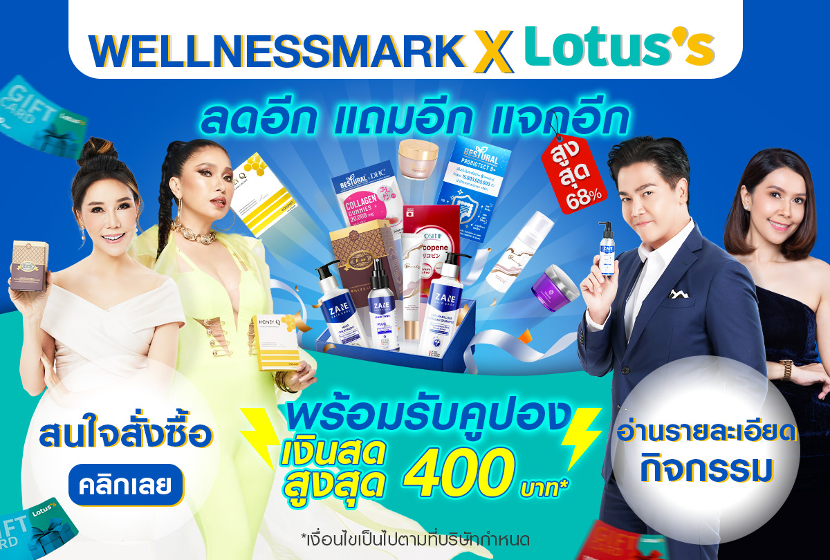 Lotus x Wellnessmark พร้อมรับคูปองเงินสดสูงสุด 400 บาท*!!