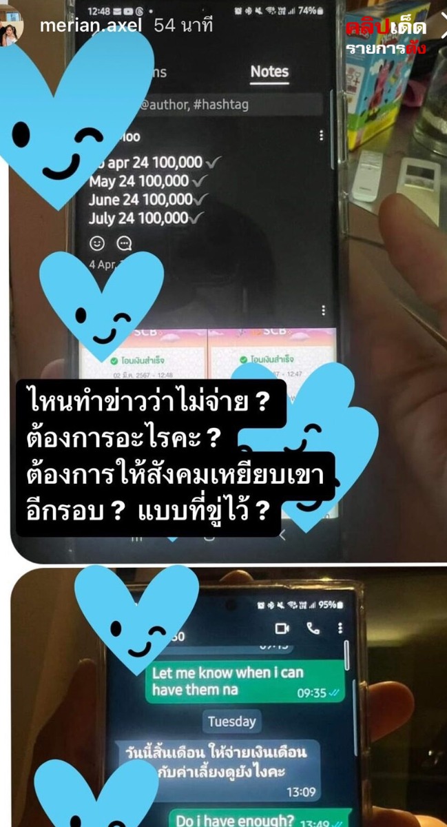 และก็ไม่ต้องรอนาน มิเรียนได้มาปาหลักฐานการโอนเงินไว้รัวๆ พร้อมระบุข้อความว่า …. “ให้มาชี้แจง ความผิดปกติของบัญชี บริษัทแต่ไม่มา