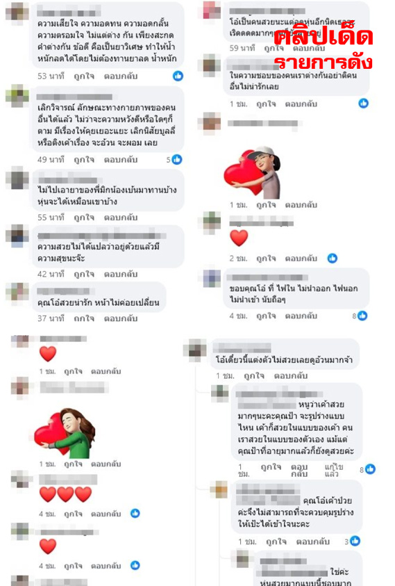 ขณะที่มีชาวเน็ตเข้าไปฟาดกลับคอมเมนต์ อาทิ เลิกวิจารณ์ ลักษณะทางกายภาพของคนอื่นได้แล้ว ไม่ว่าจะความหวังดีหรือใดๆก็ตาม มีเรื่องให้คุยเยอะแยะ