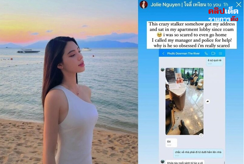 ไม่รู้ใครน่ากลัวกว่ากันแล้วตอนนี้ โจลี่ เหงียน นางแบบสาวเวียดนาม แฉกลับ พีเค สตอล์กเกอร์มานั่งรอจนกลัวไม่กลับบ้าน ต้องโทรหาตร.ขอให้ช่วย ลั่นกลัวจริงๆ เขาหมกมุ่นมาก