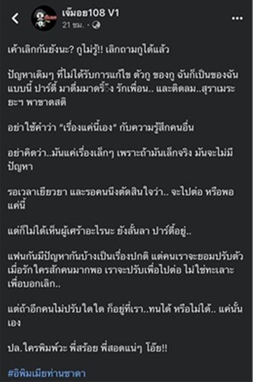 "พาขาดสติจากการดื่มมาดริ้ง! 'มดดำ คชาภา' โพสต์ล่าสุดถึงคู่รักดาราที่ลือลั่นเลิกกัน เมื่อปัญหาที่ไม่ได้รับการแก้ไขกลับก่อนเป็นประเด็นร้อนบนโซเชียลมีเดีย