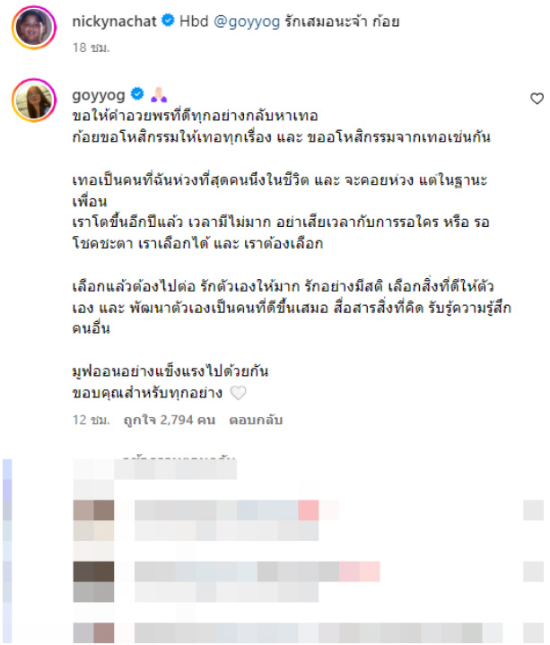 วันเกิดก้อย นิกกี้ บอกรัก ฝ่ายหญิงขอให้มูฟออน ขออโหสิกรรมให้ทุกอย่าง ขอให้รักตัวเอง และเลือกสิ่งที่ดีให้ตัวเอง