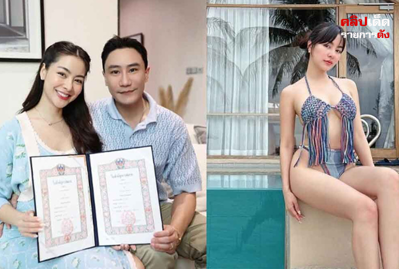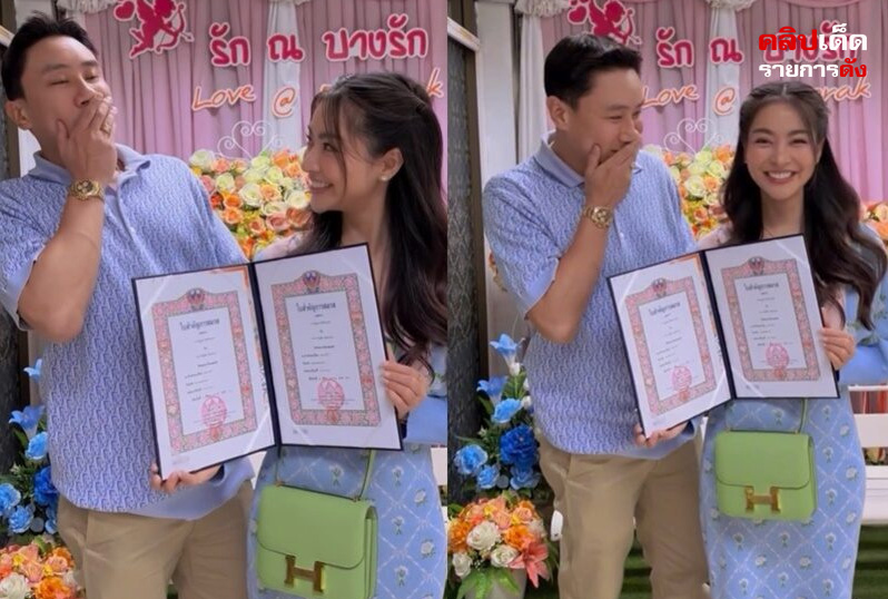 แถมฟาดด้วยภาพถือทะเบียนสมรสกันไปเลย โดยแชร์โพสต์จากอินสตาแกรมของสามี ซึ่งเป็นโพสต์วันที่เจ้าตัวและเสี่ยโบ๊ทได้ไปจดทะเบียนสมรสกัน