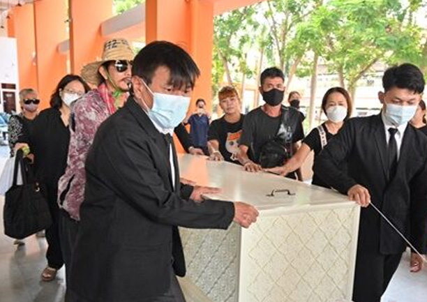 1 รูป มาประกอบพิธี จากนั้นเจ้าหน้าที่นิติเวชเคลื่อนร่างของ น.ส.เนติพร จากห้องเก็บศพมาบรรจุใส่โลงไม้สีขาว ณ ห้องทำพิธี ก่อนที่พระสงฆ์จะเดินนำร่างของ น.ส.เนติพร ซึ่งตัวแทนเพื่อนนักกิจกรรมถือกระถางธูป และรูปของ น.ส.เนติพร บรรยากาศเป็นไปด้วยความโศกเศร้า... จากนั้น เจ้าหน้าที่ได้ยกโลงที่บรรจุร่าง น.ส.เนติพร ขึ้นรถตู้สุริยาหีบศพ ป้ายทะเบียน