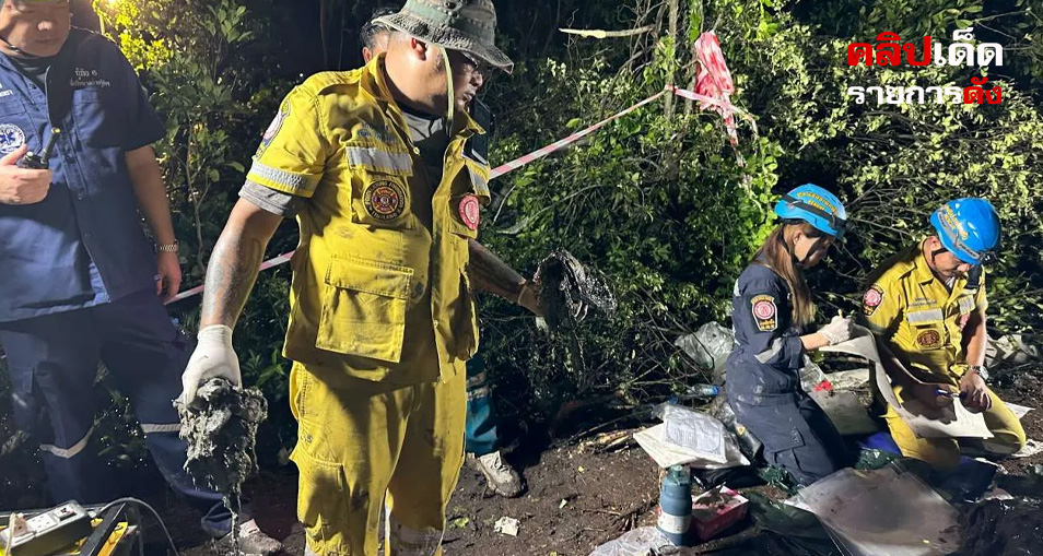“ชิ้นเนื้อและซากเครื่องบินกระจัดกระจาย! “เหตุเครื่องบินตกเล็ก! พบร่างและชิ้นส่วนเครื่องบินหลังค้นหาทั้งคืนในฉะเชิงเทรา”