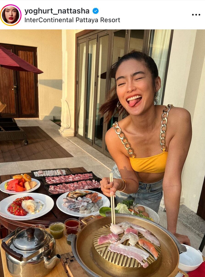 กระทะ ด้วยสีหน้ามีความสุข พร้อมกับถ่ายรูปโชว์ไปหนึ่งแมตช์ เป็นการการันตีคำพูดของโยเกิร์ต แถมภาพดังกล่าว พีเค ก็ได้มีการกดหัวใจให้ด้วย... ทั้งนี้ ด้านอินสตาแกรมของพีเคเองก็มีภาพที่พีเคและโยเกิร์ตถ่ายรูปคู่กันที่สระว่ายน้ำ เช็กอินในวันและสถานที่เดียวกันกับที่โยเกิร์ตกำลังกินหมูกระทะอยู่ ทำเอาหลายคนตั้งคำถามว่า สรุปแล้ววันนั้นพีเคได้กินหมูกระทะกับโยเกิร์ตหรือไม่?...