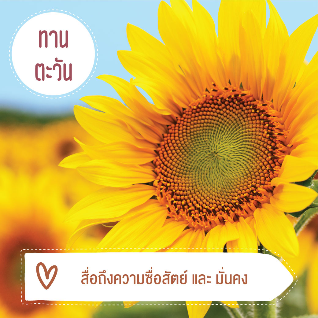 ดอกทานตะวัน หมายถึง ตัวแทนแห่งความรัก ความสุข ความอบอุ่น และความยั่งยืน นอกจากนี้ยังสื่อถึงความซื่อสัตย์และมั่นคง เหมือนดั่งต้นทานตะวันที่ชูสวยตลอดทั้งปี จึงสามารถนำไปมอบให้กับแฟนในวันวาเลนไทน์เพื่อใช้แทนความในใจได้ รวมถึงคู่รักหลายคู่ยังนำมามอบให้กันในวันแต่งงานครบรอบ 3 ปีด้วย