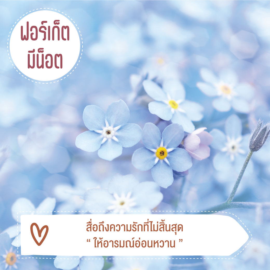 ดอกฟอร์เก็ตมีน็อต หมายถึง ดอกไม้ที่เหมาะกับวันวาเลนไทน์มาก ๆ เพราะมีความหมายดีงามเหมือนกับชื่อ สื่อถึงความรักที่ไม่สิ้นสุด ให้อารมณ์อ่อนหวาน และเป็นสัญลักษณ์ของรักแท้ที่ช่วยให้หวนนึกถึงความทรงจำที่มีร่วนกันกับคนรัก โดยการมอบดอกฟอร์เก็ตมีน็อตนี้ให้กับคนรักของคุณ จะเปรียบเสมือนการบอกเขาหรือเธอว่า "อย่าลืมฉันนะ"