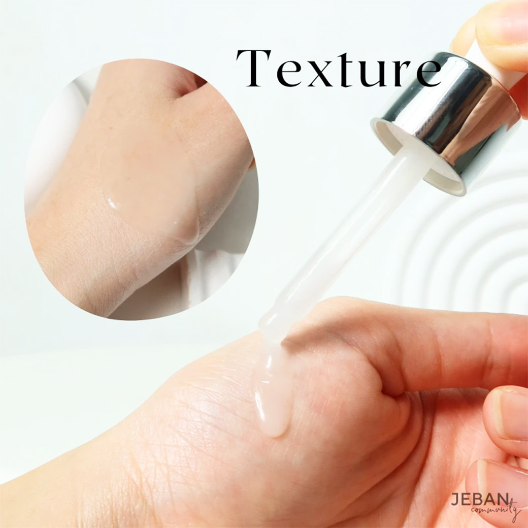 Texture : เนื้อเซรั่มสีขาวข้น ทาลงผิวแล้วซึมไวกลืนไปกับผิว ไม่เหนอะหนะ รู้สึกผิวนุ่มชุ่มชื้นทันทีหลังทาค่ะ