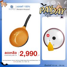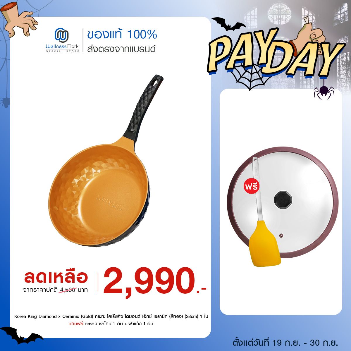 Korea King Diamond x Ceramic (Gold) กระทะ โคเรียคิง ไดมอนด์ เอ็กซ์ เซรามิก (สีทอง) (28cm) 1 ใบ + แถมฟรี ตะหลิว ซิลิโคน 1 อัน + ฝาแก้ว 1 อัน